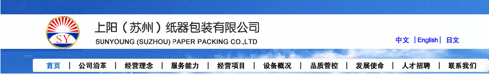 上陽(蘇州)紙器包裝有限公司是一家有著40多年歷史的紙器包裝企業,其前身為 1965年成立于臺灣高雄的高豪紙器。1998年隨產業發展,遷至江蘇省蘇州高新區成立上陽(蘇州)紙器包裝有限公司。